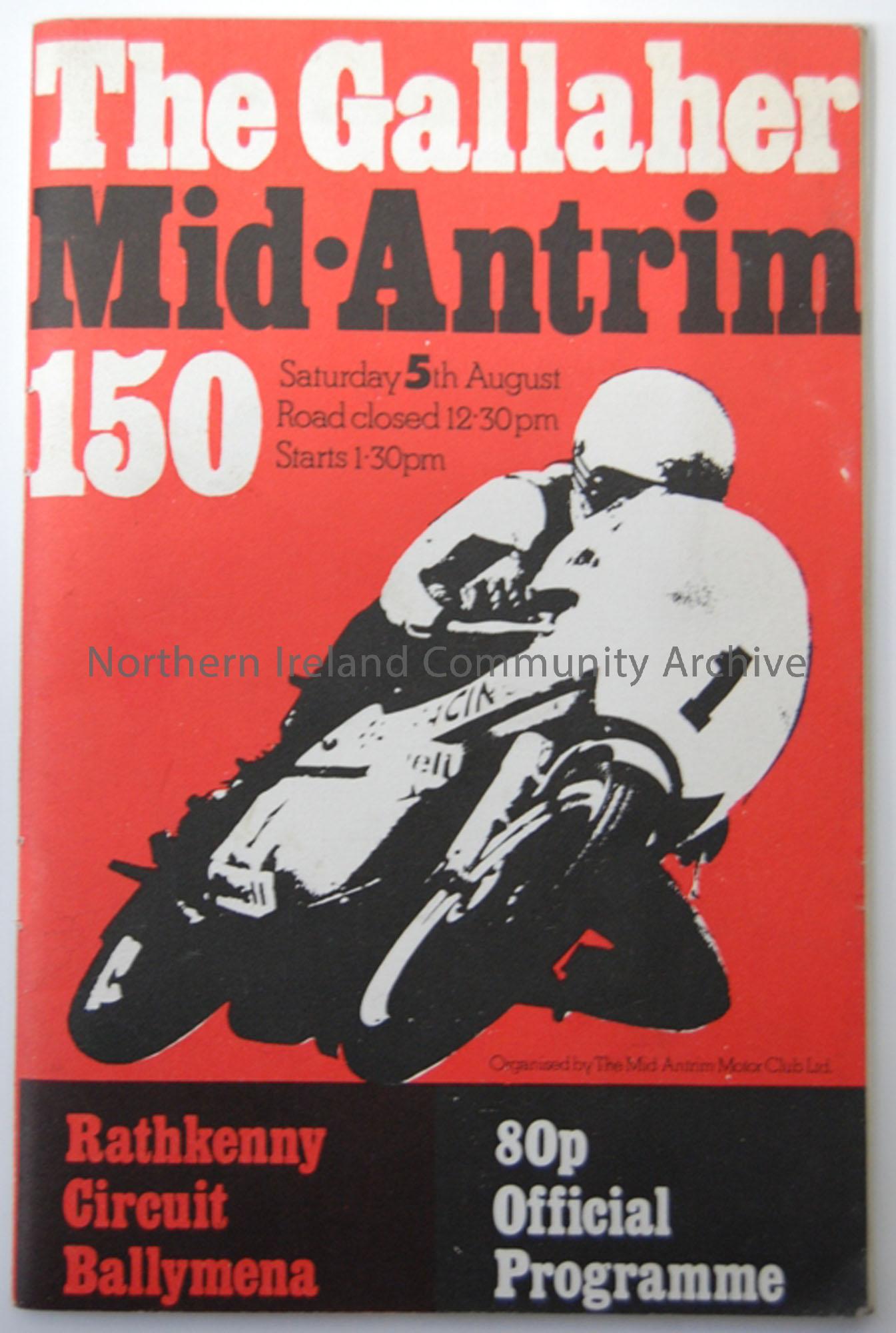 The Gallagher Mid-Antrim '150' Motorcycle road race, Saturday 5th August, starting at 1.30pm, Rathkenny circuit, Ballymena.