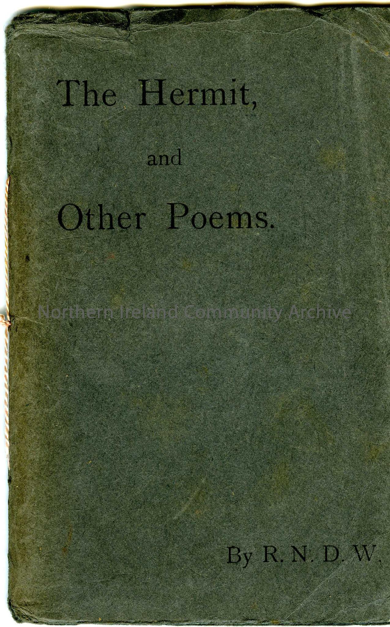 The Hermit and Other Poems. newspaper review by Sam Henry of the work affixed to inside of front cover. Handwritten poem, by the author, affixed to inside of back cover