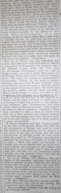 "Radical Meeting in Ballymoney - Sir Edward Carson's policy criticised" Continued...25/10/1913