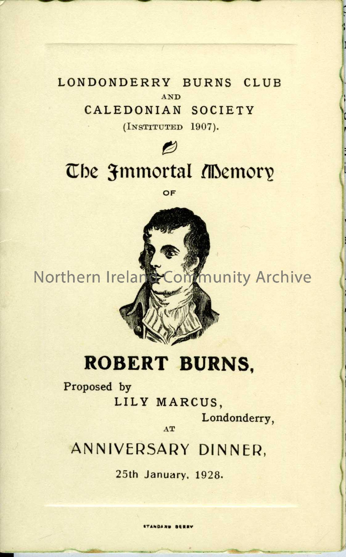 The Immortal memory address for Burns Supper on 25th January 1928.