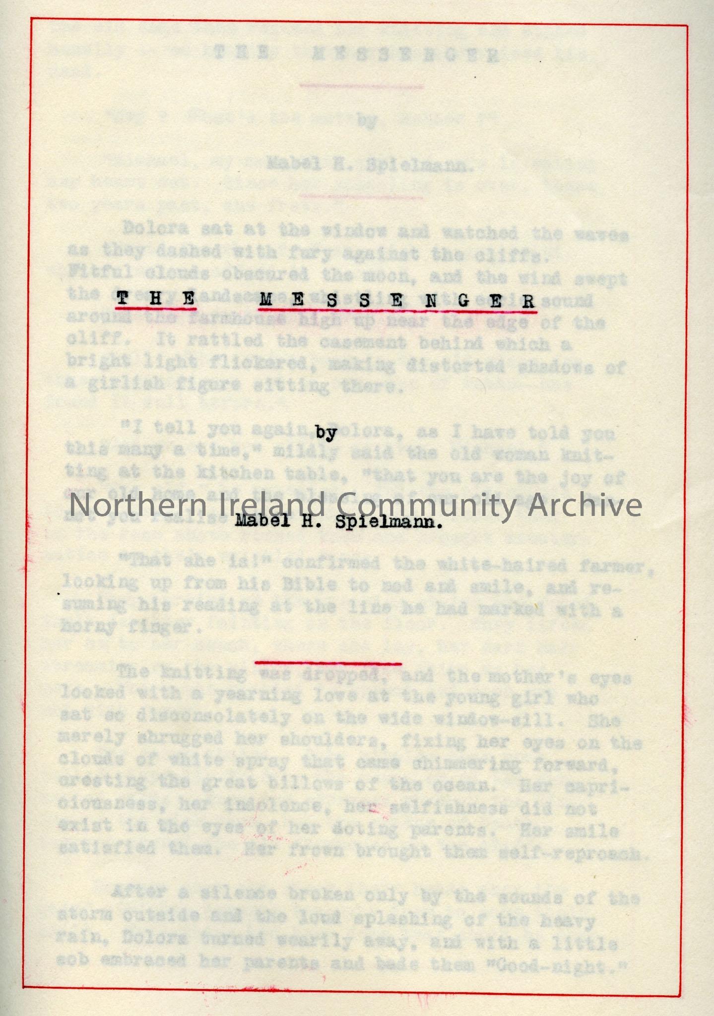 Original typescript in wrappers of 'The Messenger' by M.H.Spielmann. Dated 1912, signed by M.H.Spielmann, in envelope addressed to Mrs. Thomson