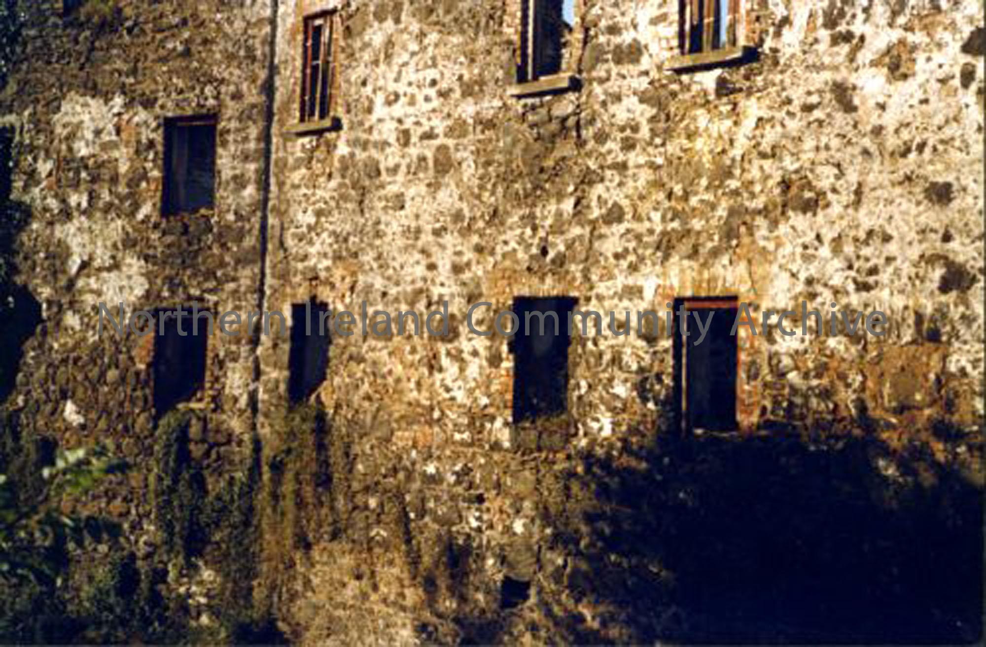The old corn mill at Balnamore Mill, which was later turned into flats to house mill workers. The building adjoining it on the left was part of the row of houses known as the Arc. (5858)