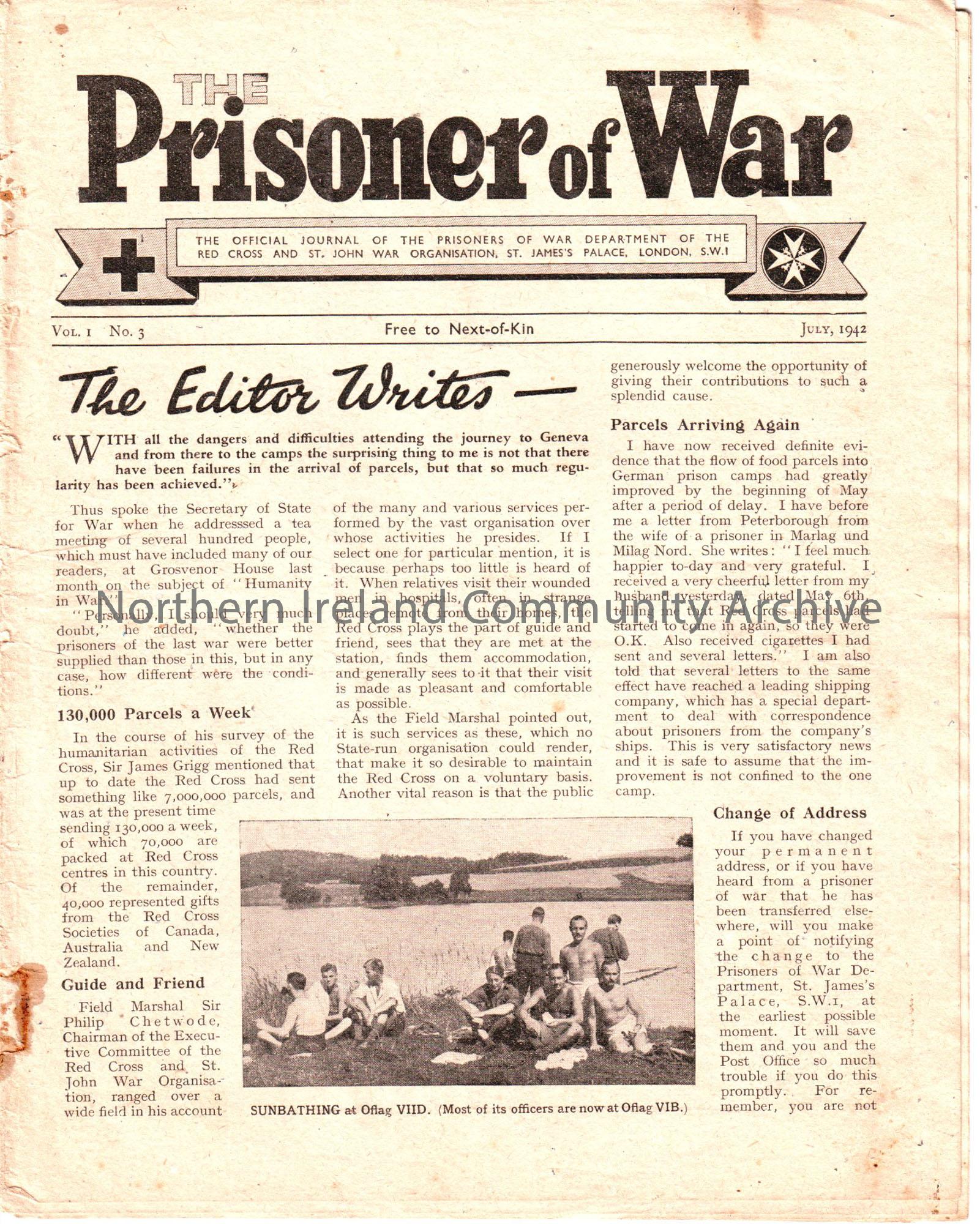 The Prisoner of War, The official journal of the prisoners of war Department of the Red cross and St.John War organisation, St.James's Palace, london. Vol 1 No.3. July 1942