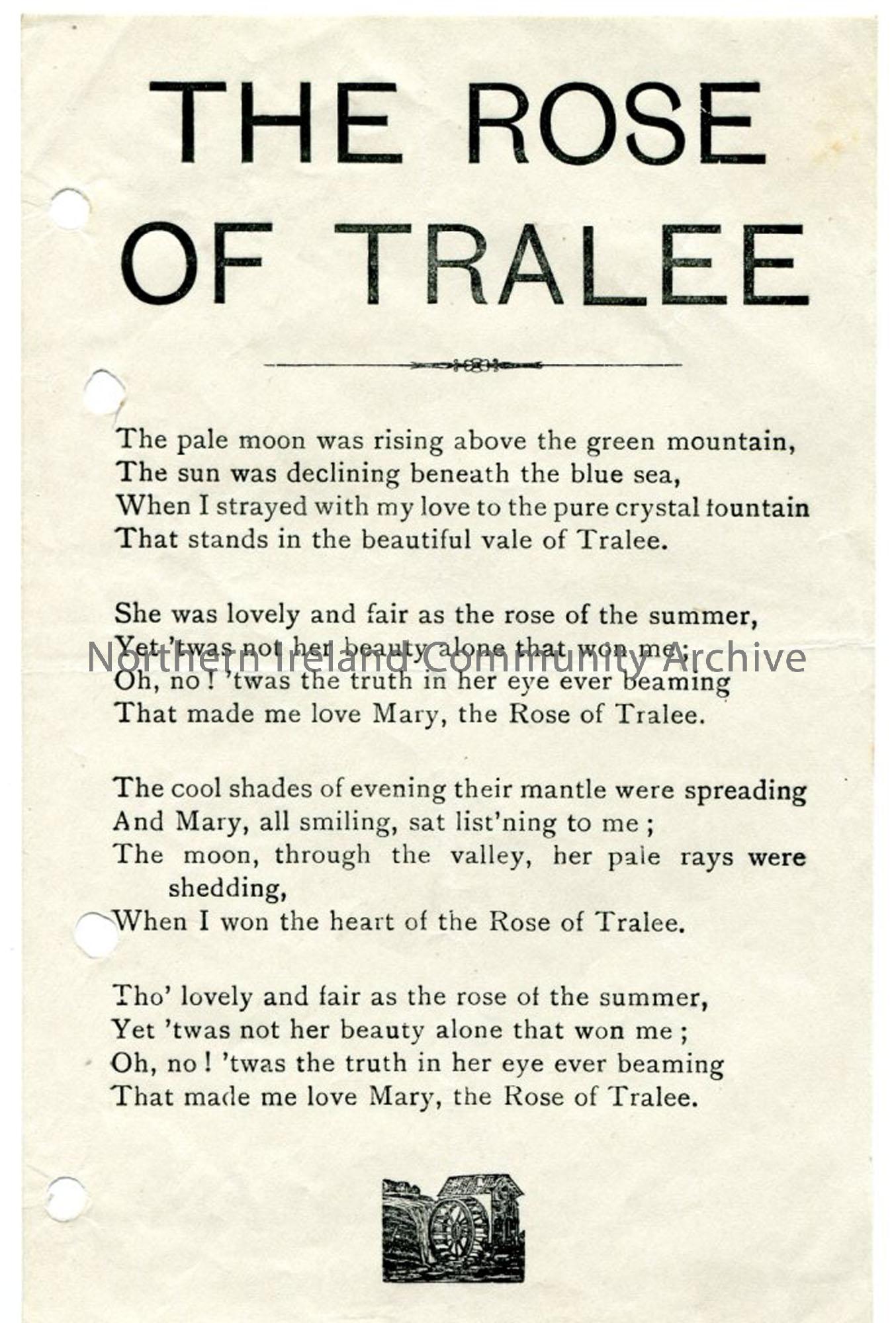 Printed words to 'The Rose of Tralee'.