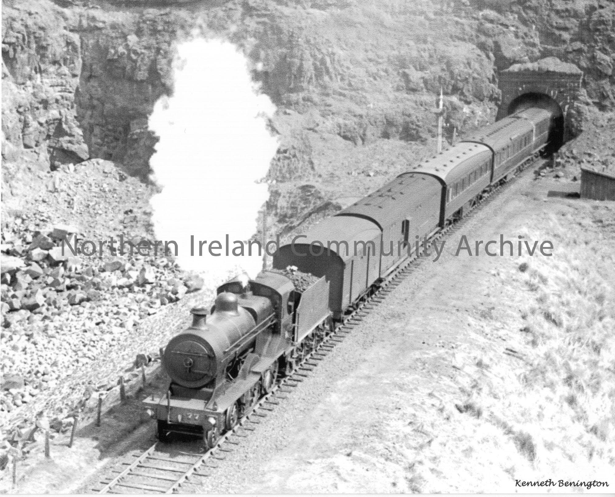The U2 class 4-4-0 No. 77 at Port Vantage, between the two tunnels between Castlerock and Downhill