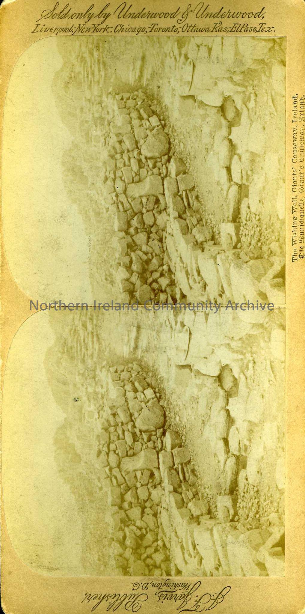 stereoscopic card titled, The Wishing Well, Giants' Causeway, Ireland. two images