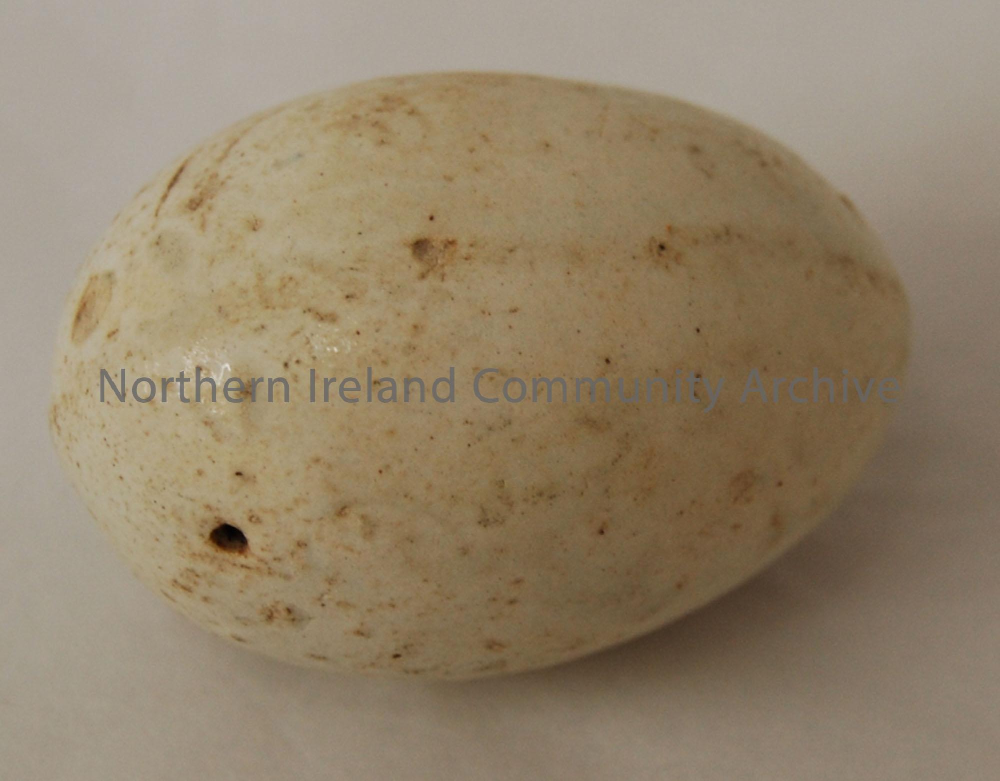 These fake eggs were placed below the hens to induce them to lay more; probably c.1920-30; surface has glazed,shiney finish.