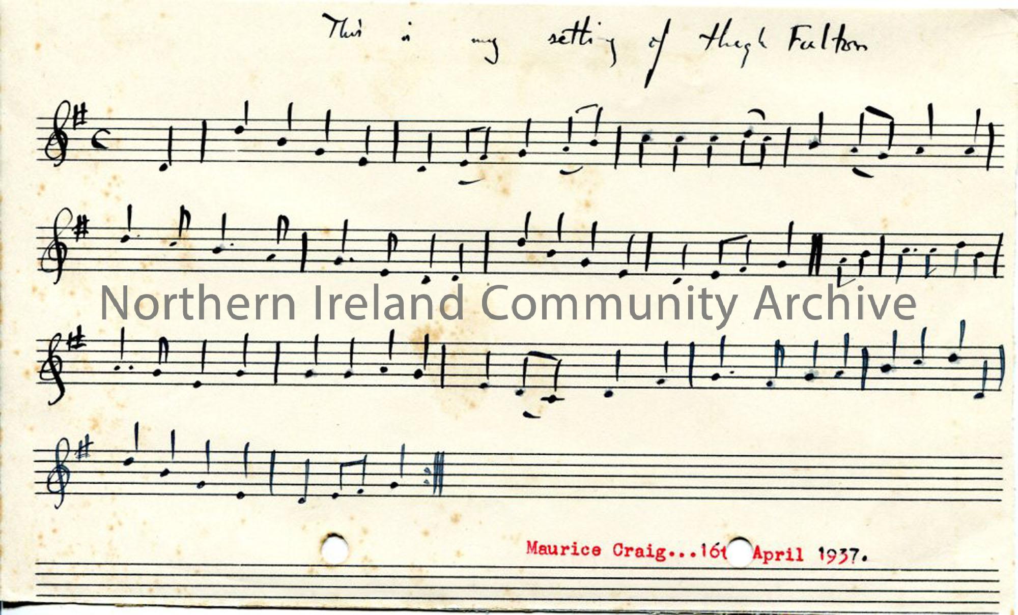 Hand drawn staff notation under note 'This is my setting of High Fulton'.