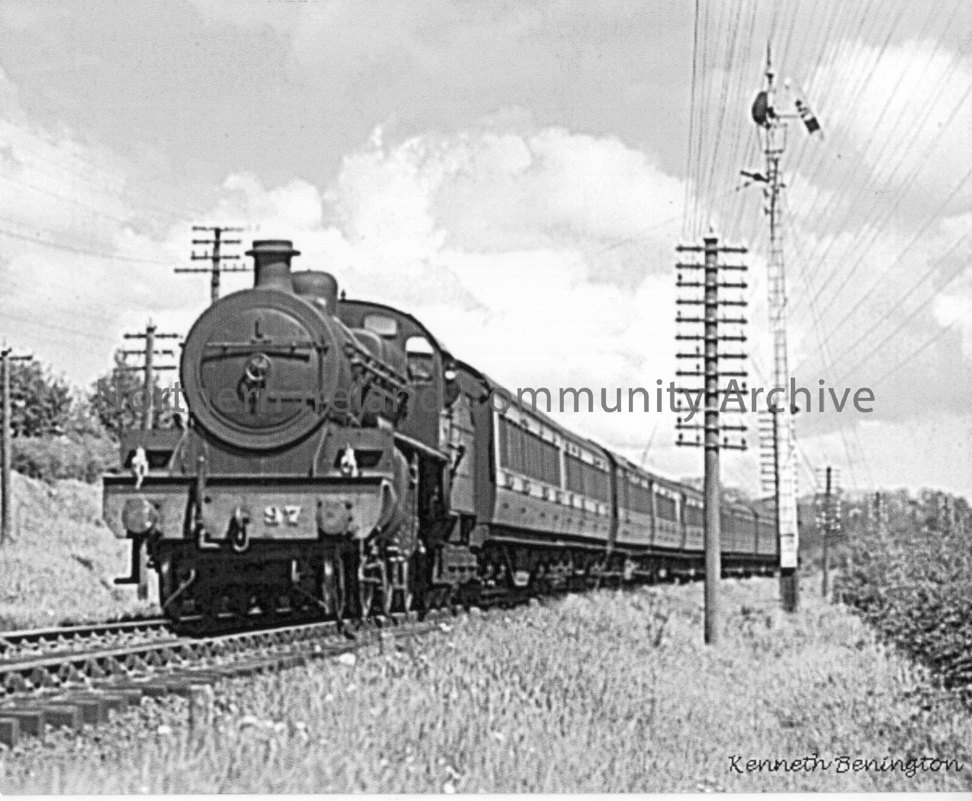 This is the W class 2-6-0 No.97 ‘Earl Of Ulster’ with a train of eight coaches from Belfast.