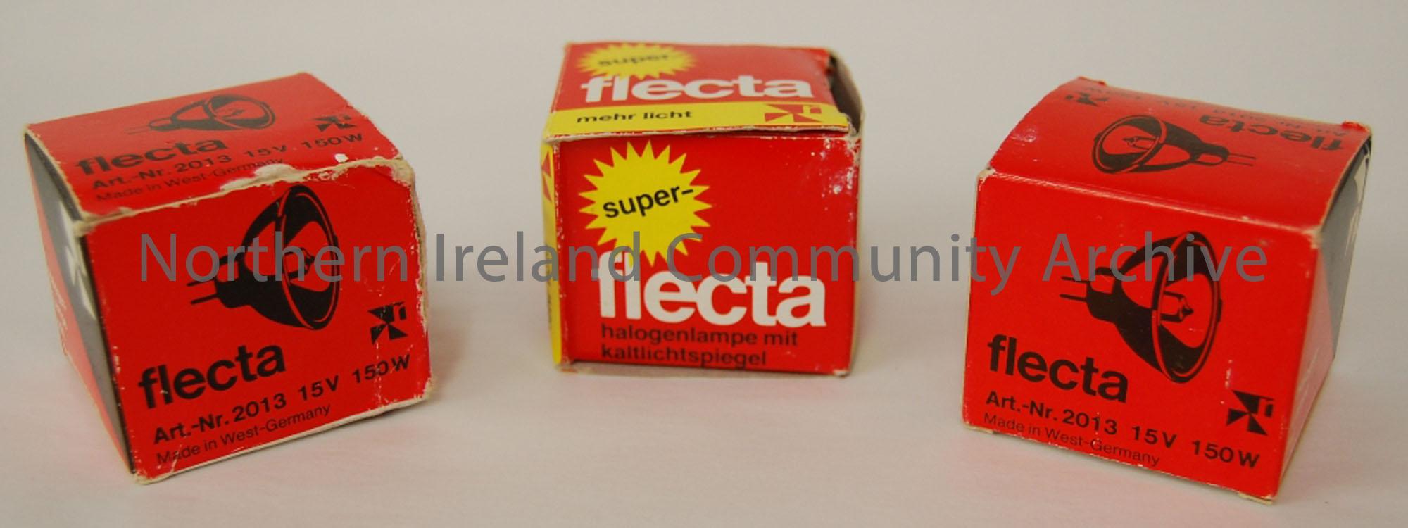 Three Flecta Halogen lamps. 15V, 150W in original red boxes