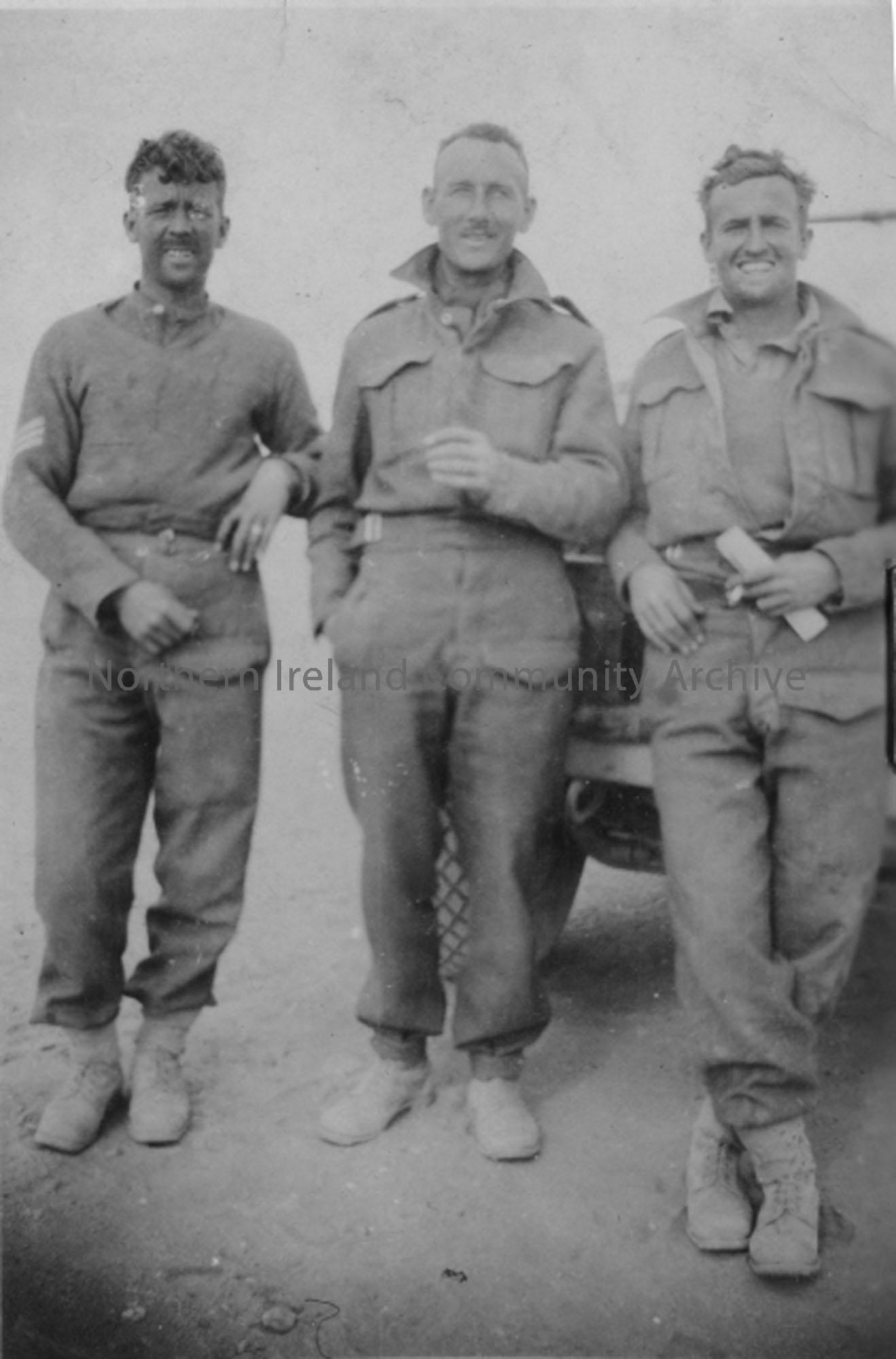 Three gunners in front of vehicle