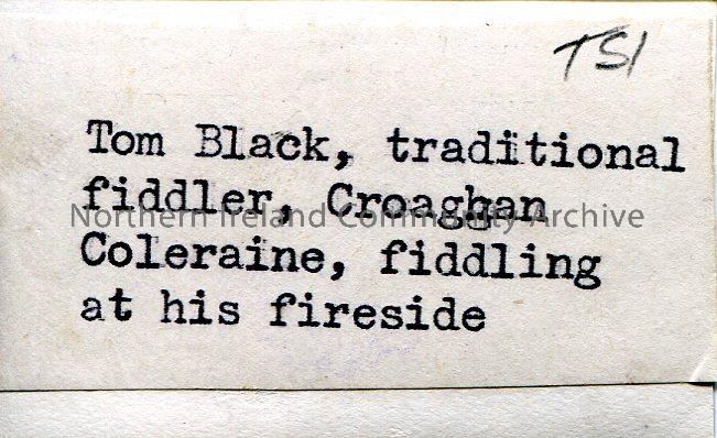 Tom Black, traditional fiddler, Croagghan, Coleraine, fiddling at his fireside.