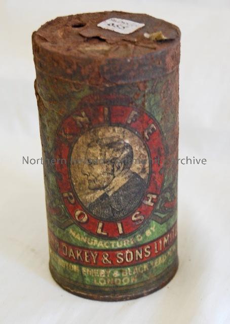 John Oakey knife polish. John Oakey (1813-1887) set up a manufacturing business for polishing materials. Courtesy of Ballycastle Museum.