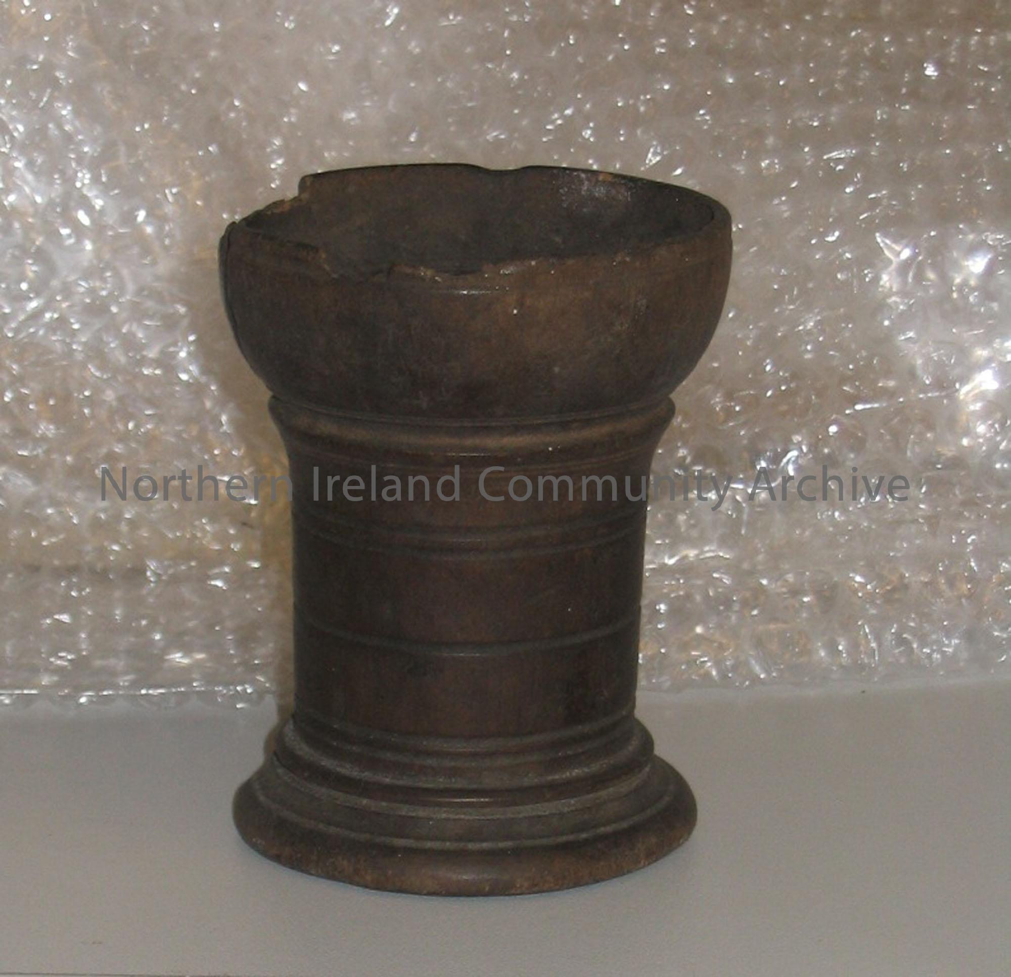 Turned cylindrical wooden goblet widened at the...