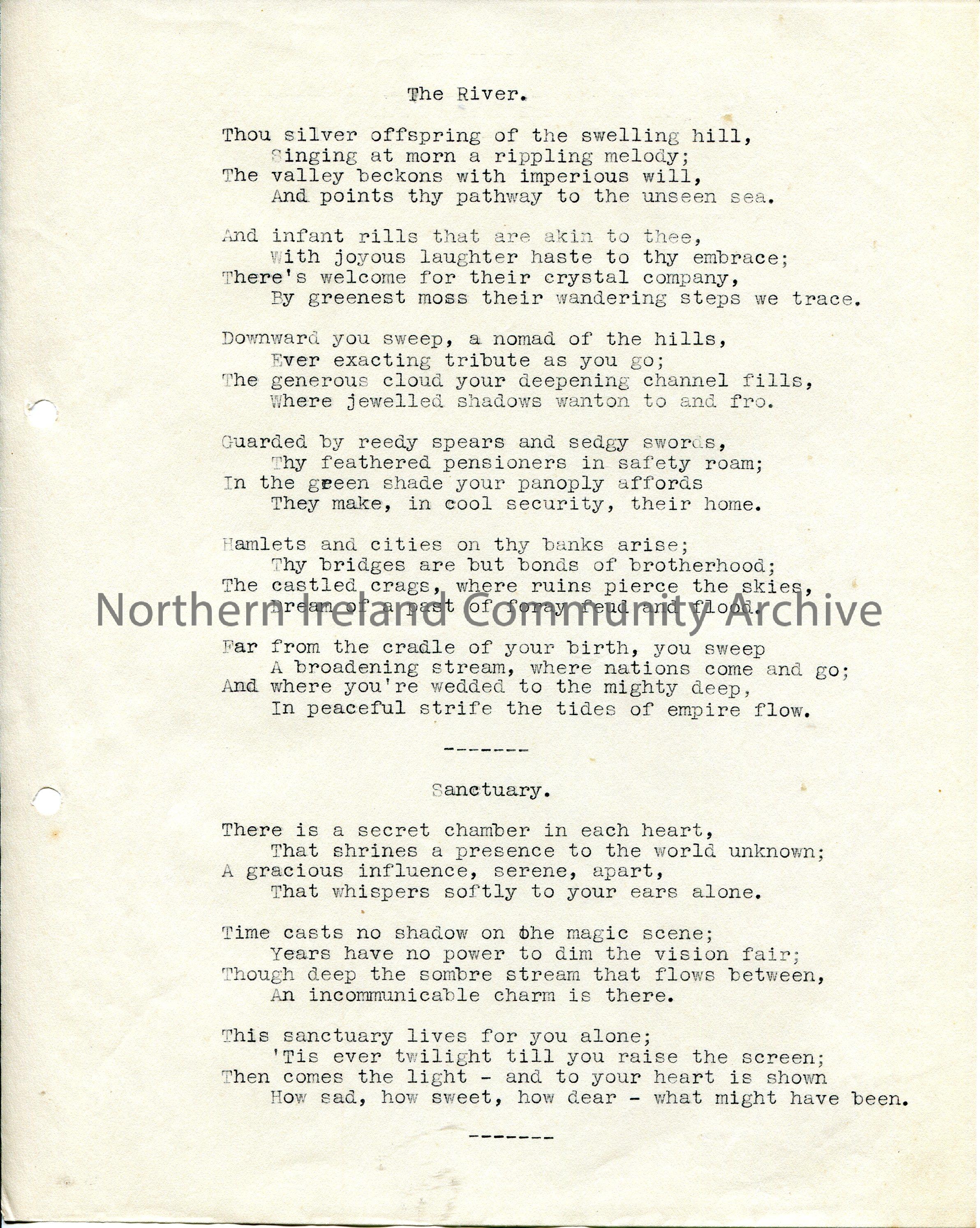 Two typed poems titled, ‘The River’ and ‘Sanctuary’.