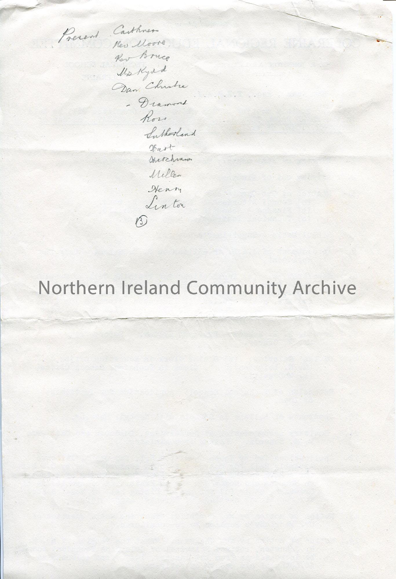 Typed agenda to Sam Henry from the Secretary of Coleraine Regional Education Committee, W R Johnston. For meeting taking place in Coleraine Town Hall on 2nd November 1946. 15 points on agenda. Education Bill enclosed. Handwritten list of attendees on reverse by Sam.