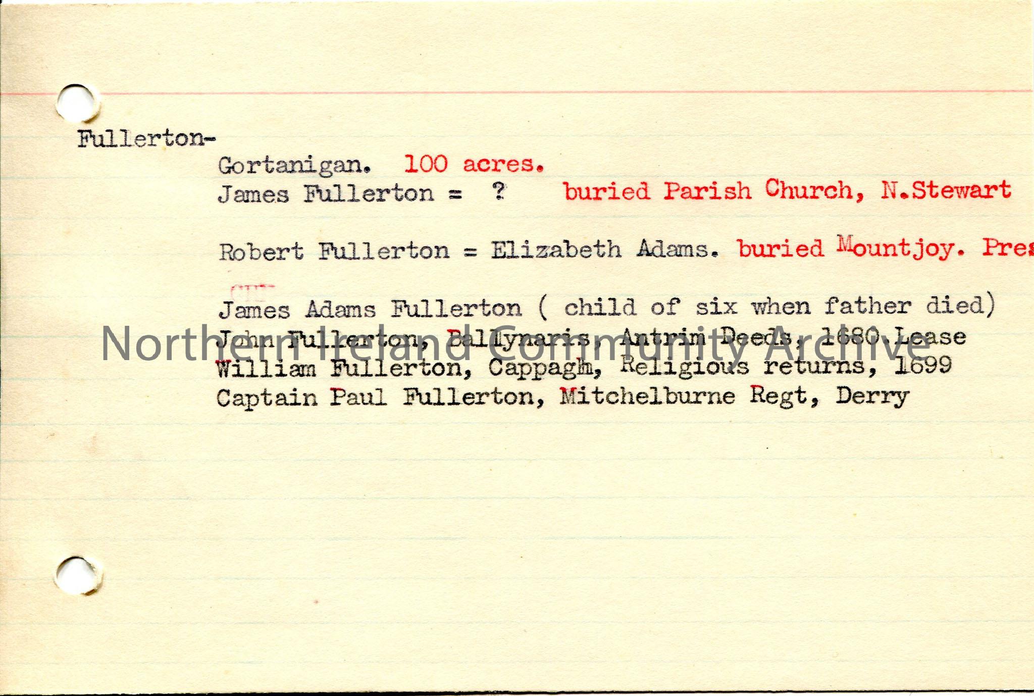 Typed brief notes re Fullerton family – F...