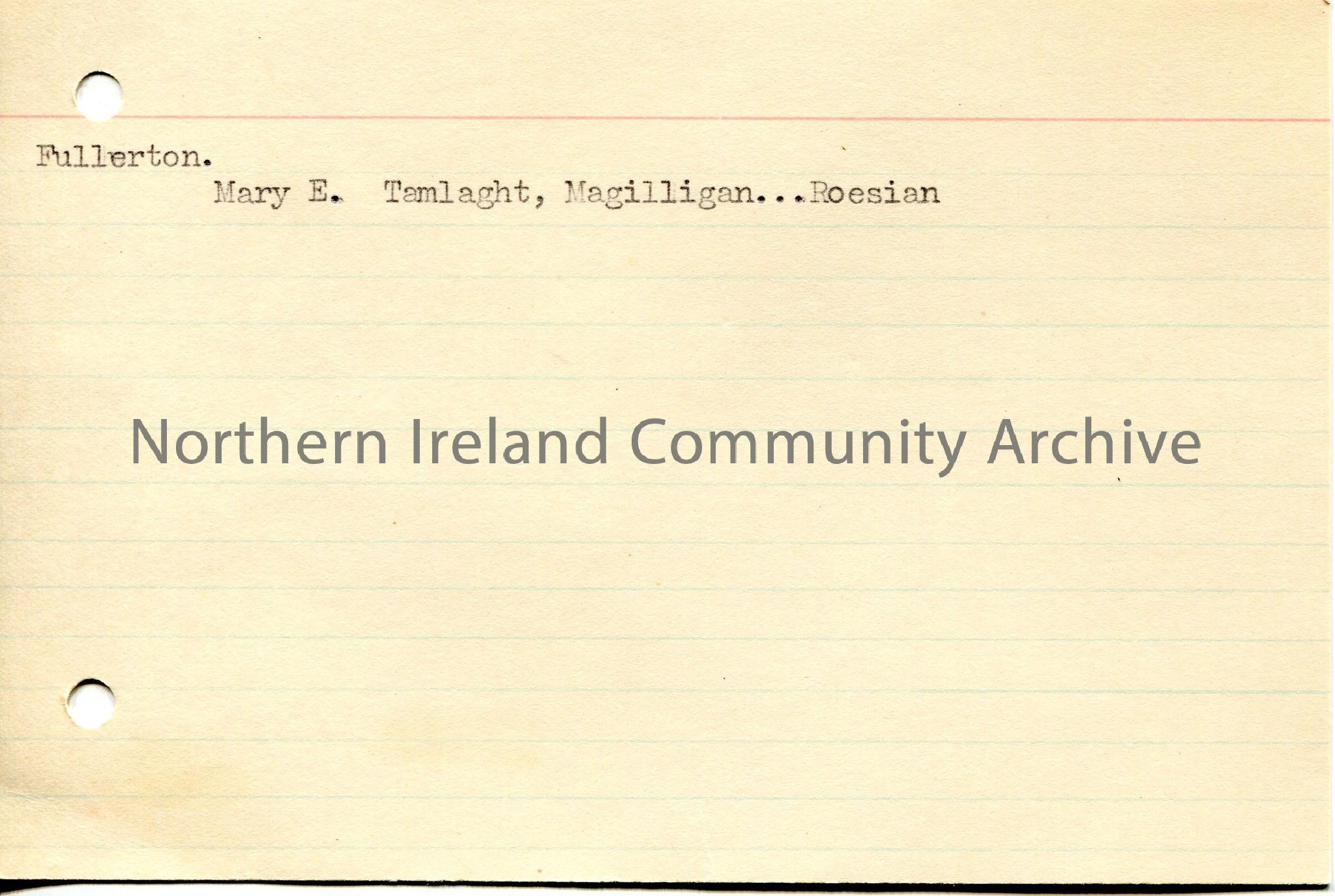 Typed brief notes re Fullerton family – 1...