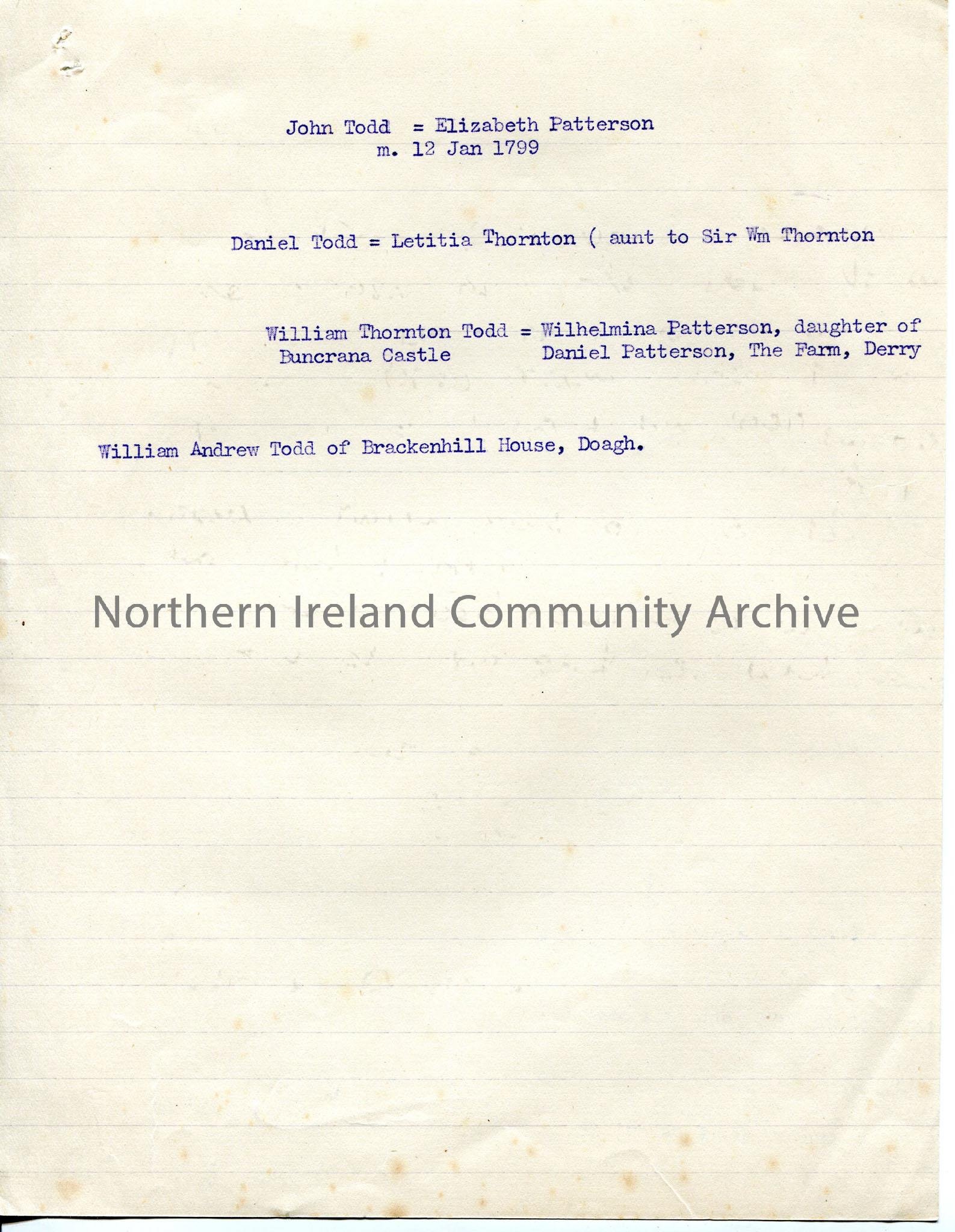 Typed brief notes re Todd marriages