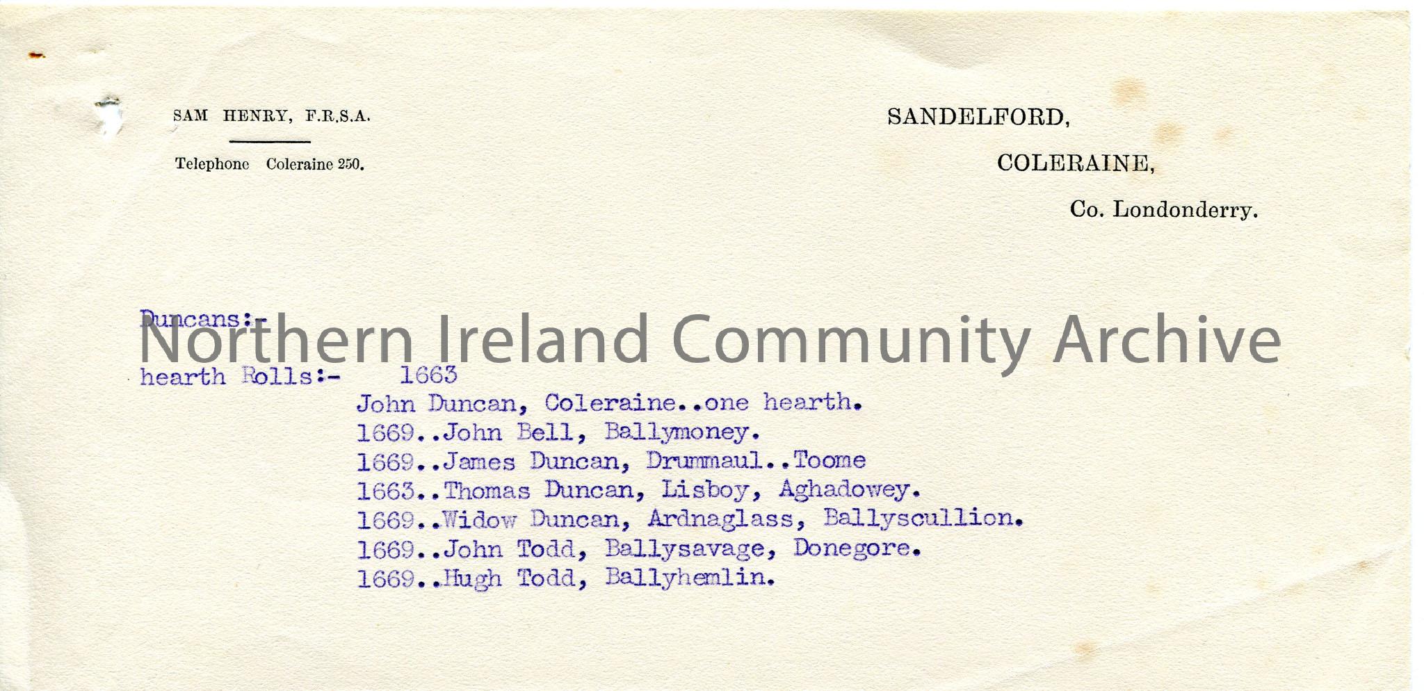 Typed notes under heading ‘Duncan-Todd-Wi...