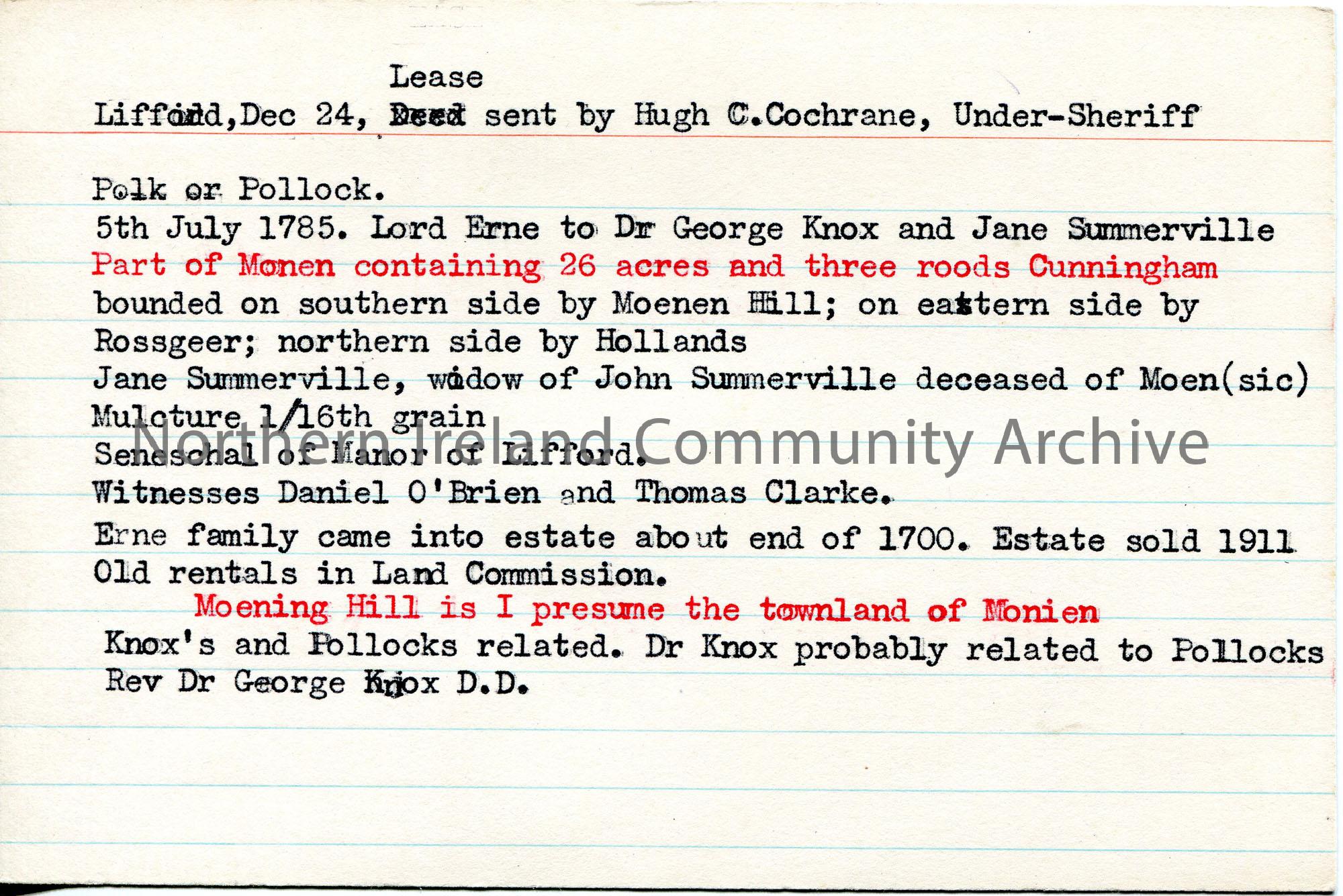 Typed genealogical notes re surname Pollock, Polk and Knox.