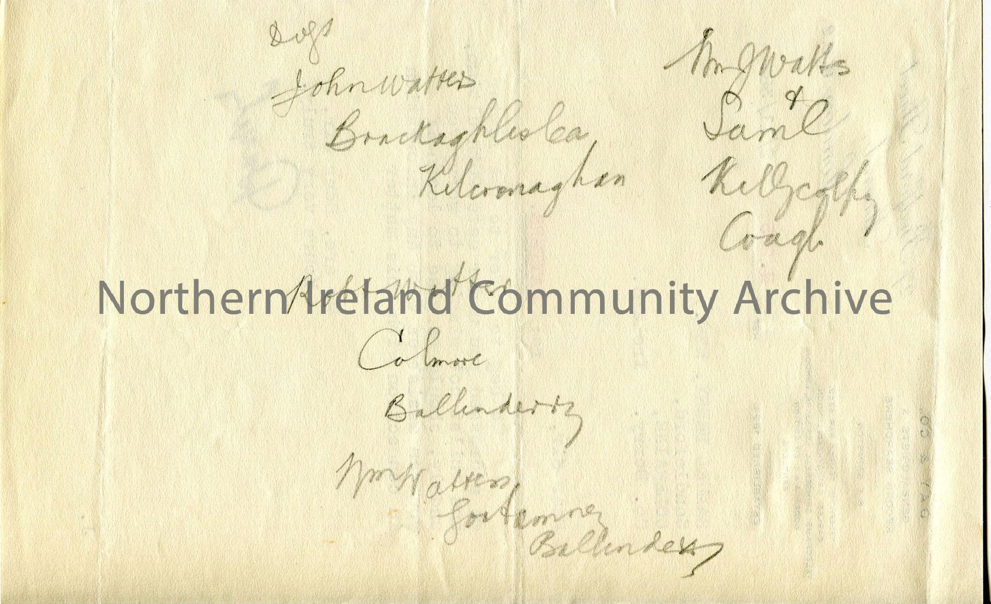 Typed letter on headed notepaper. Refers to letter sent on 20.10.1938 re Watters (and Taylor) - repeats request for help. On reverse - handwritten rough notes re various Watters.