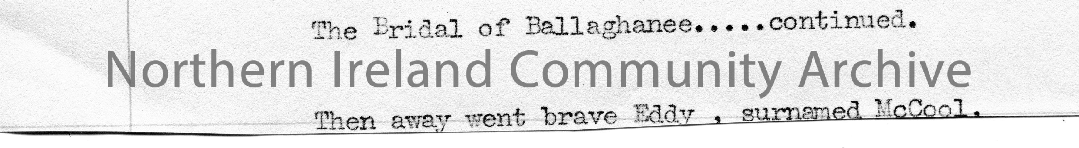 Typed note on strip of paper. Mentions Bridal of Ballaghanee.