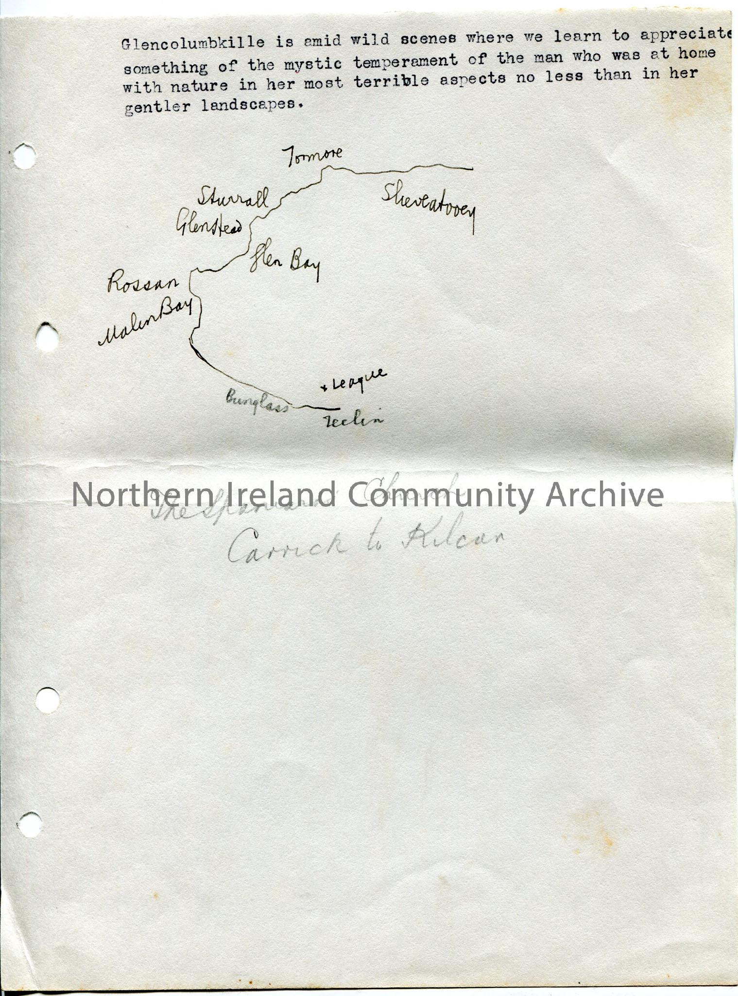 Typed notes and hand drawn map relating to Glencolumbkille area