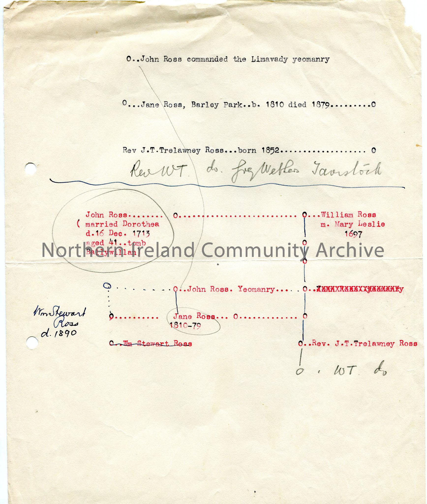 Typed notes of genealogical interest re Ross family.