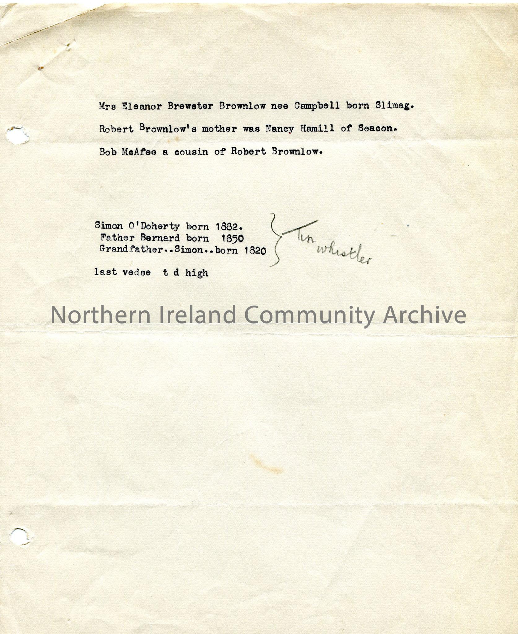 Typed notes of genealogical interest.