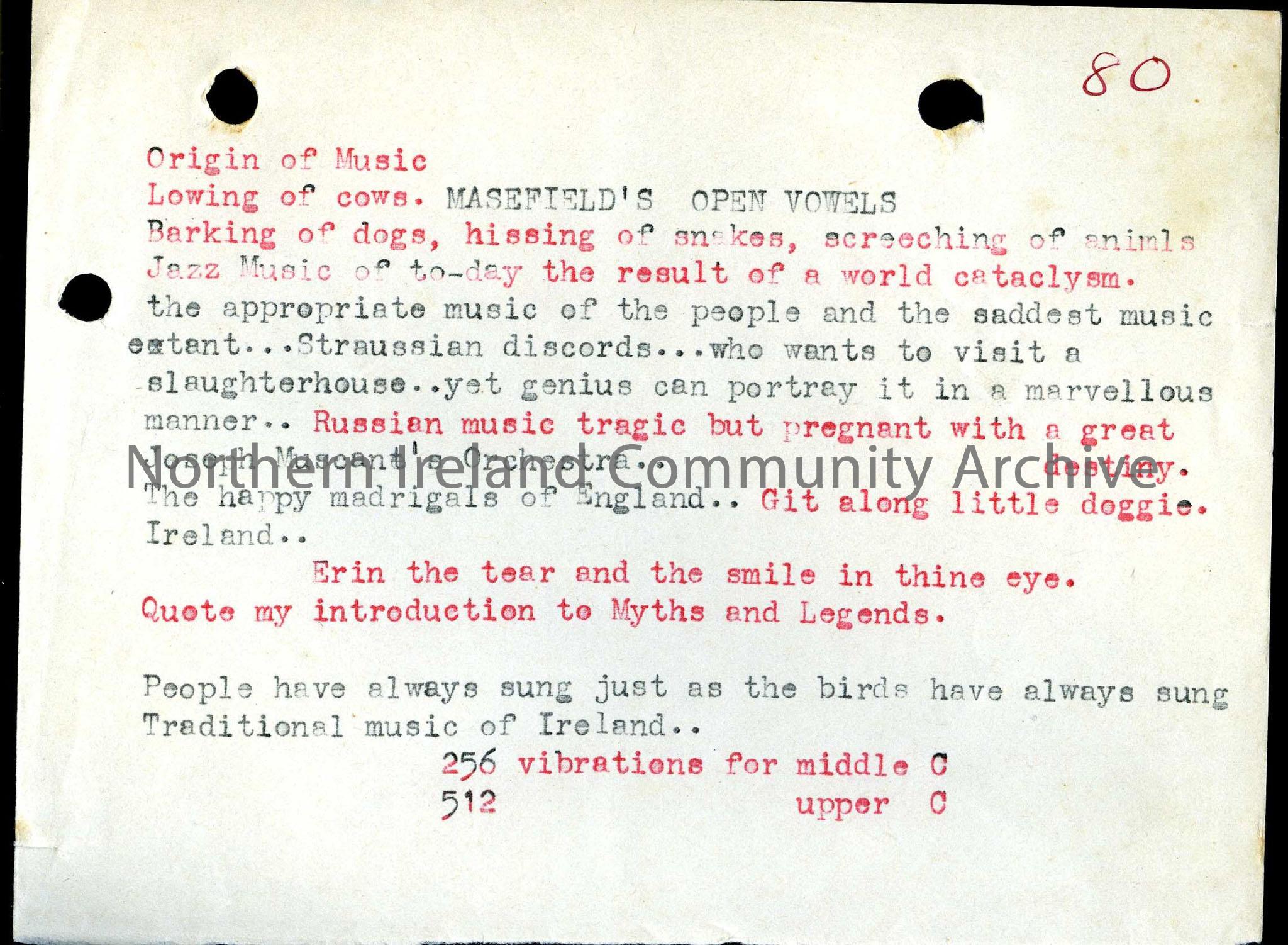 Typed notes on the origin of music.