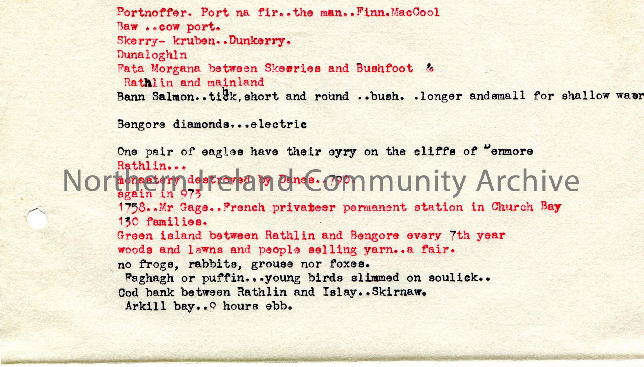 Typed notes re Rathlin.