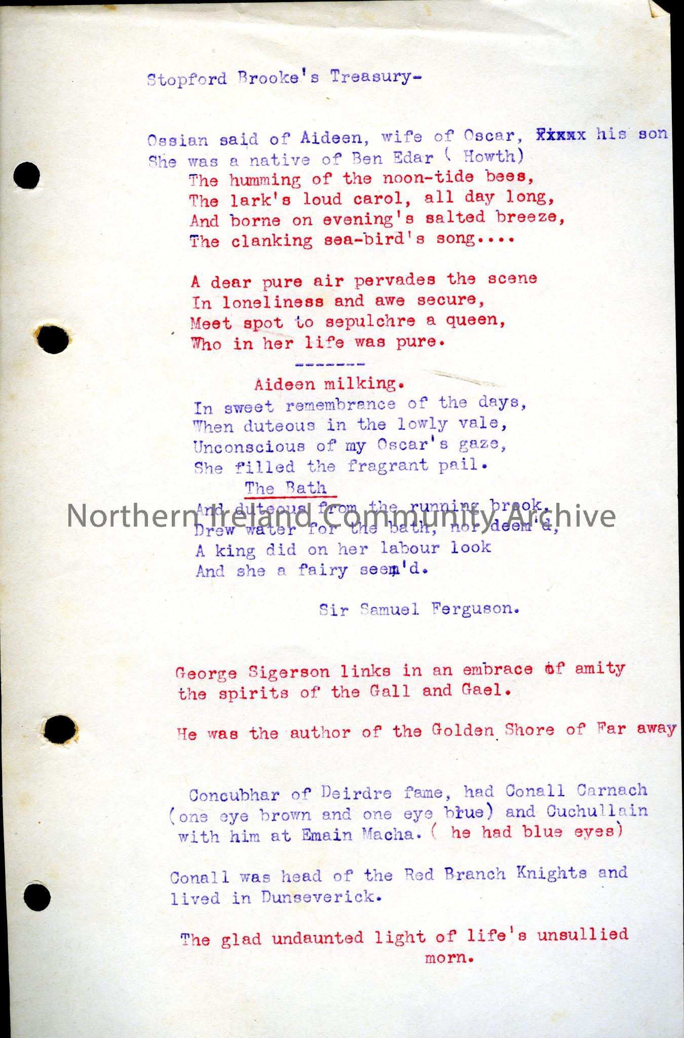 Typed notes titled, 'Stopford Brook's Treasury'.