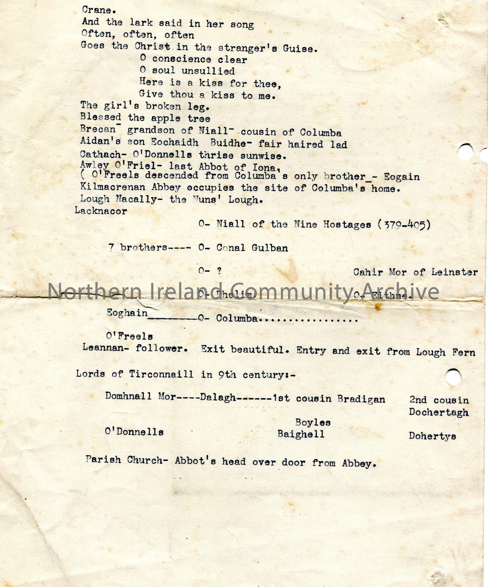 Typed notes re St. Patrick.