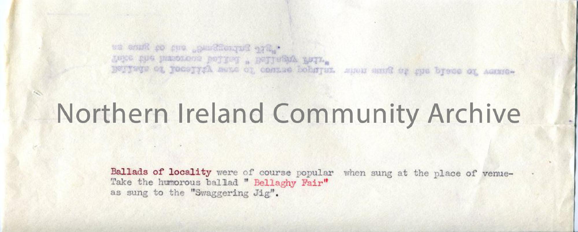 Typed sentence - 'Ballads of locality' - ? part of whole script on ballads.