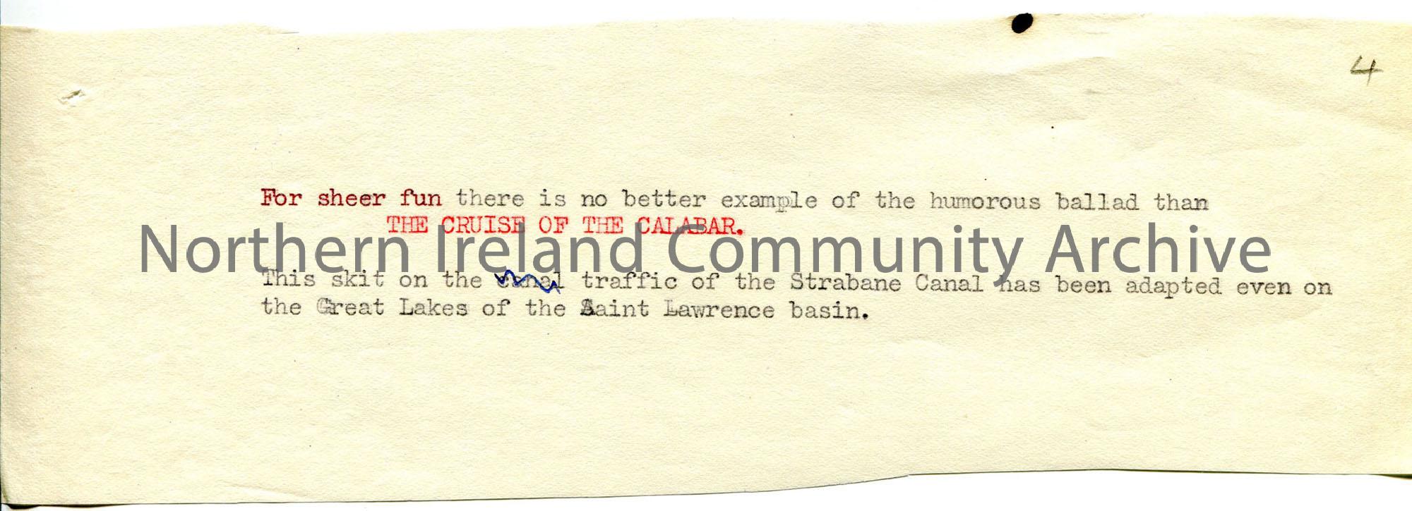 Typed short paragraph – fun ballads – ? part of whole script on ballads. Number ‘4’ handwritten top right