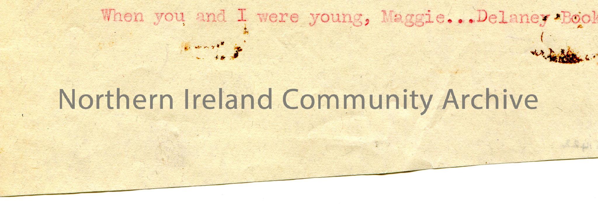 Typed title of song ‘When you and I were young, Maggie’. Delaney Book 28.