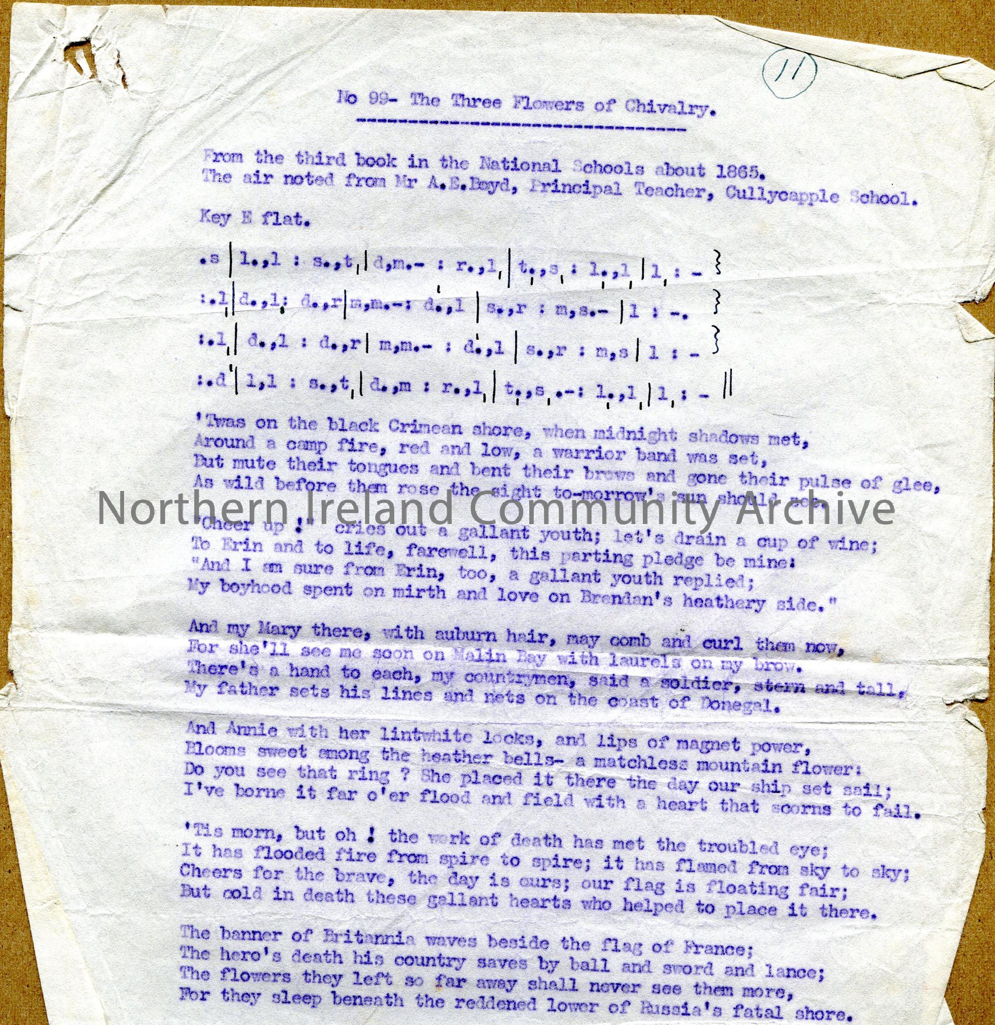 Typed tonic sol-fa notation and words to ‘The Three Flowers of Chivalry’