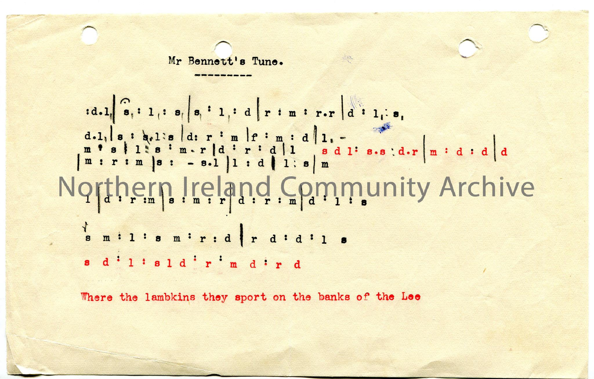 Typed tonic sol-fa notation – ‘Mr Bennett’s Tune’.