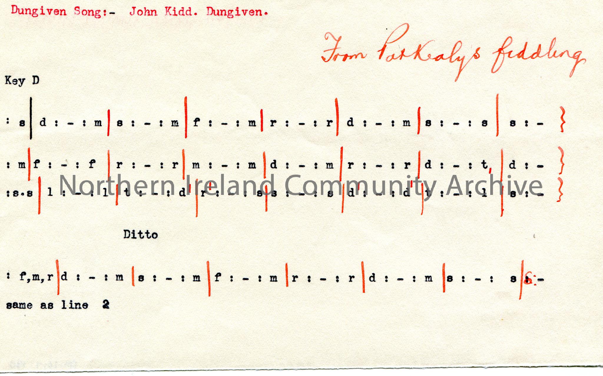 Typed tonic sol-fa notation to Dungiven Song – John Kidd. Dungiven. From Pat Kealy’s fiddling.