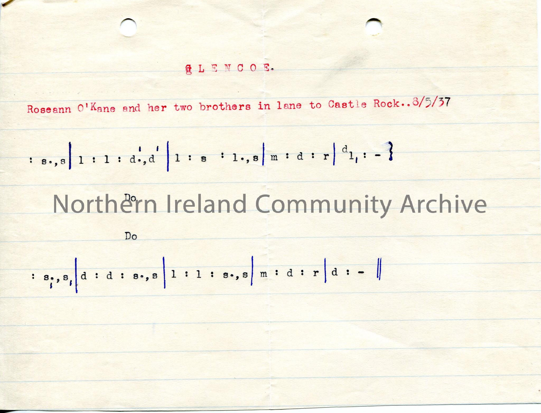 Typed tonic sol-fa notation to ‘Glencoe’.