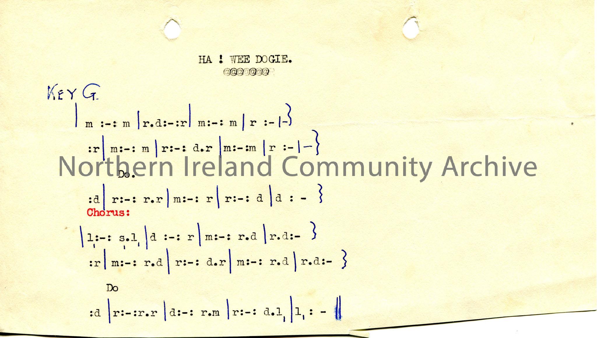 Typed tonic sol-fa notation to ‘Ha! Wee Dogie’