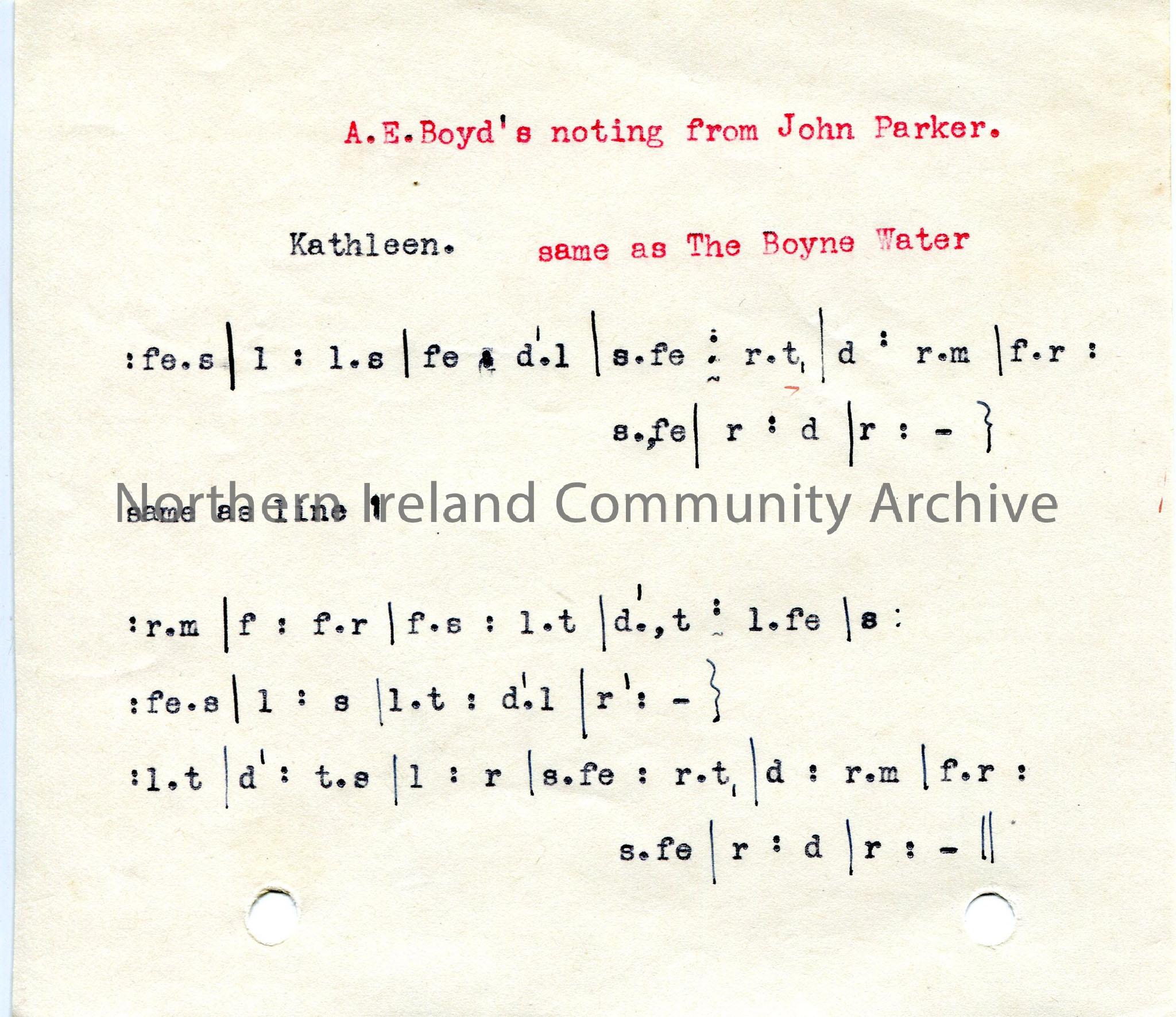 Typed tonic sol-fa notation to ‘Kathleen&...