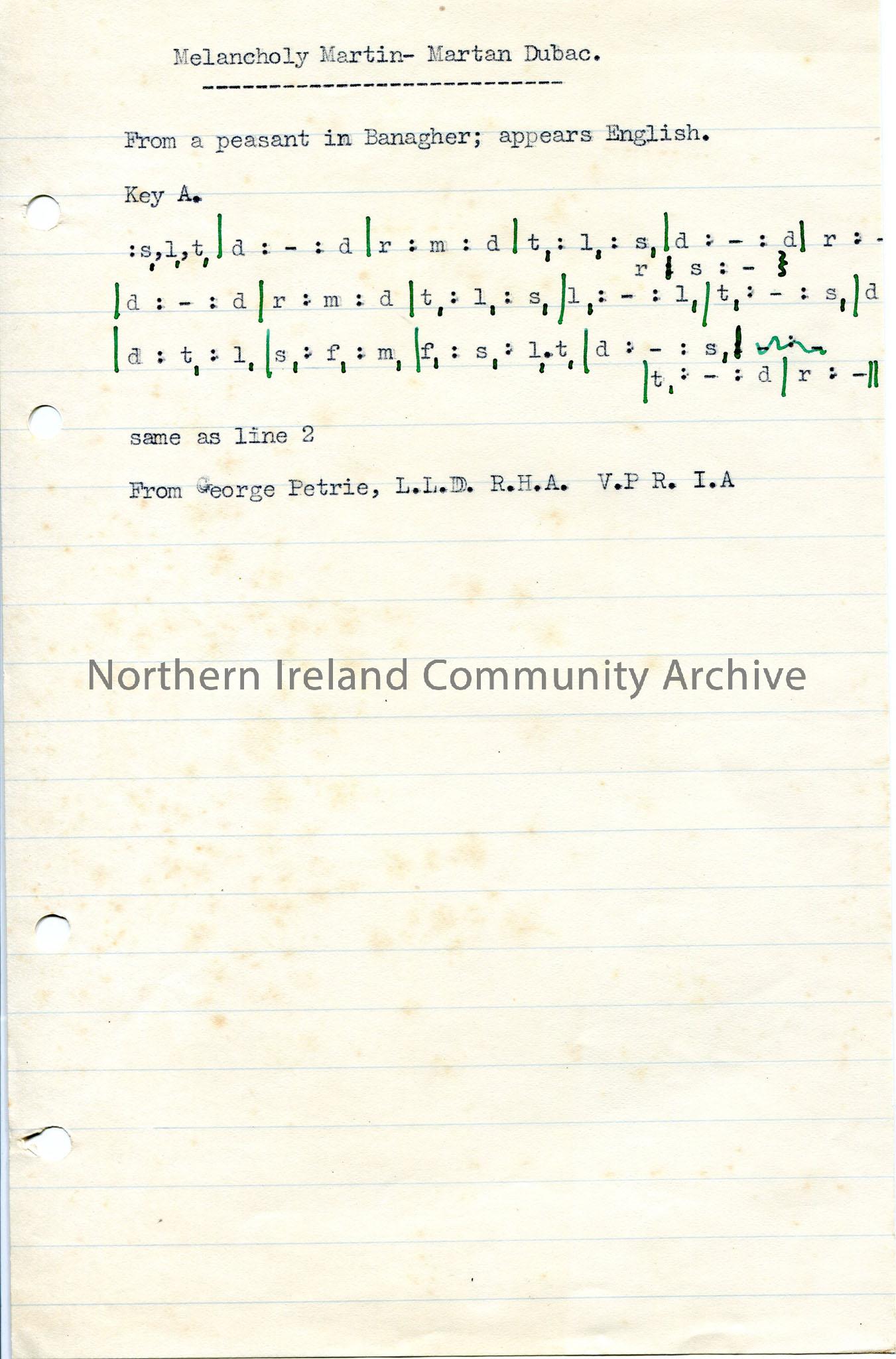 Typed tonic sol-fa notation to ‘Melancholy Martin – Martin Dubac’.