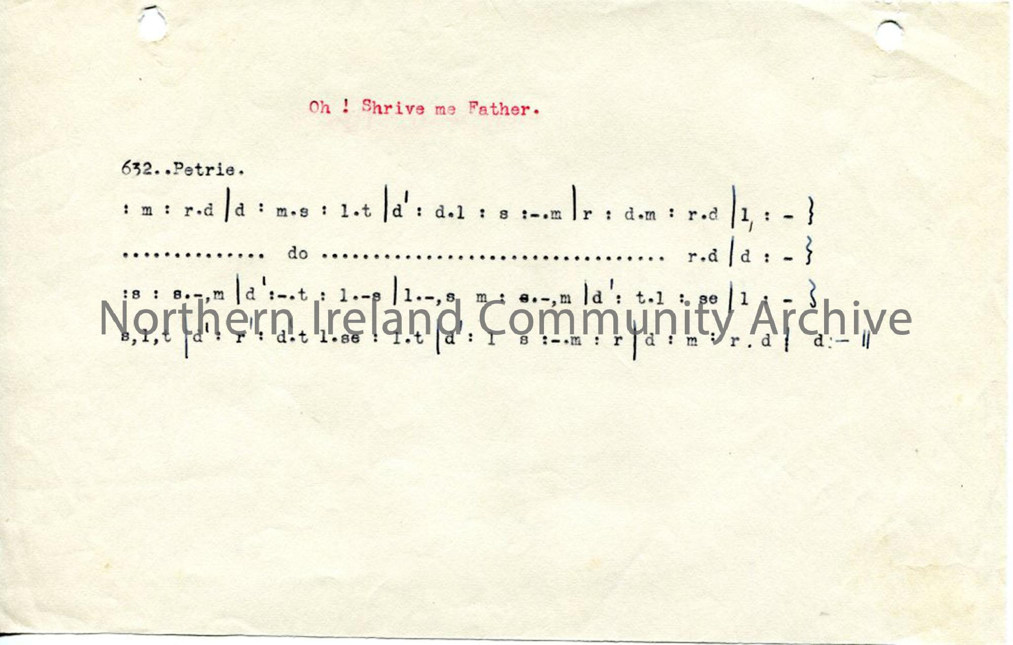 Typed tonic sol-fa notation to ‘Oh! Shrive me Father