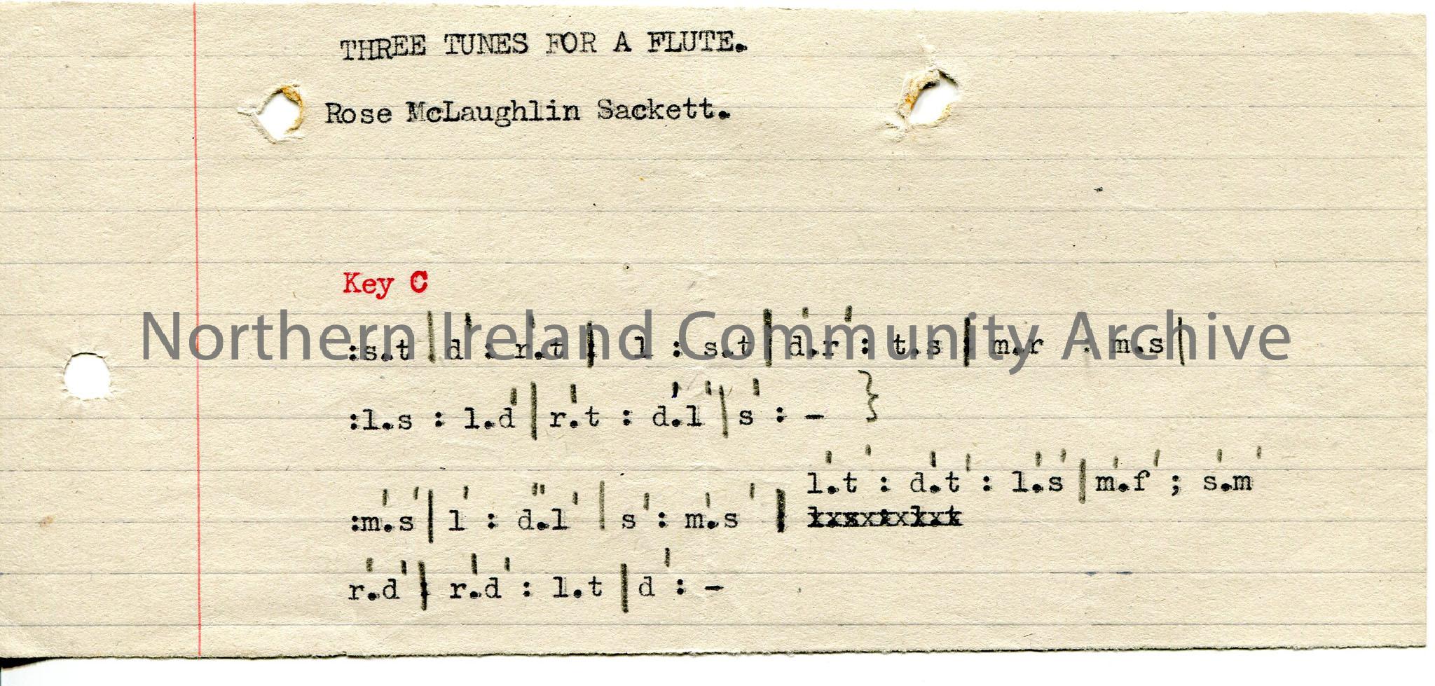 Typed tonic sol-fa notation to one tune under heading ‘Three Tunes for a Flute’