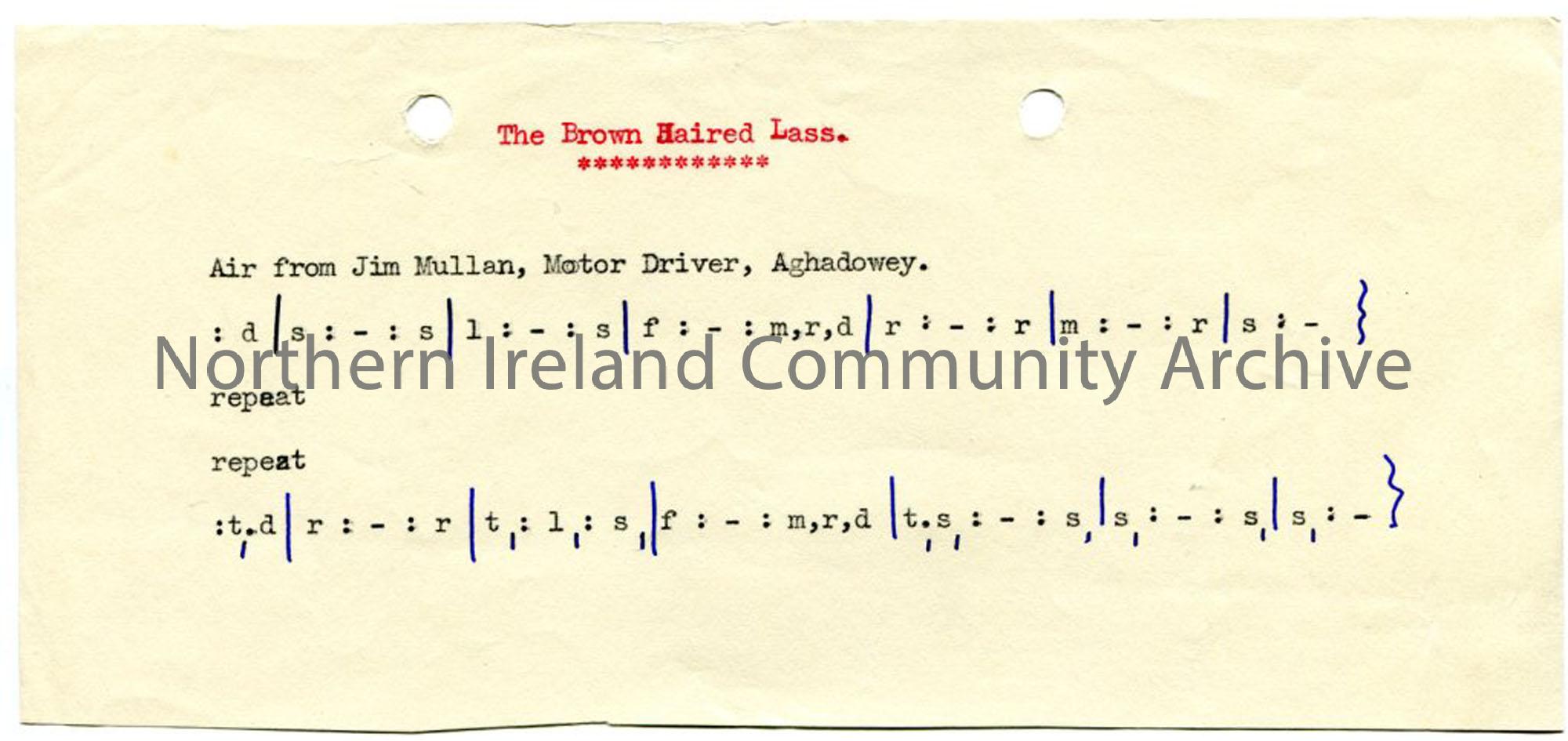 Typed tonic sol-fa notation to 'The Brown Haired Lass'