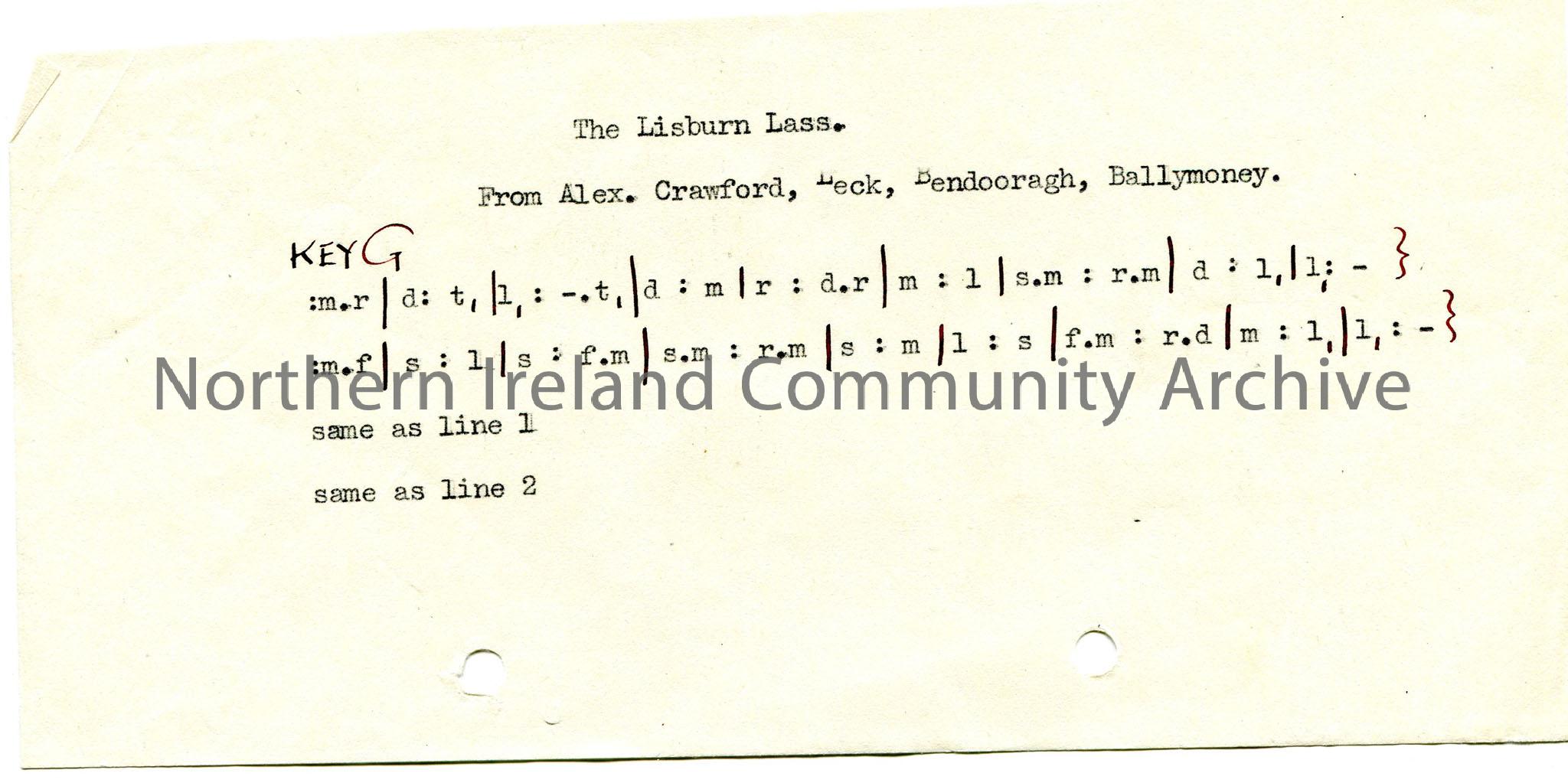 Typed tonic sol-fa notation to ‘The Lisburn Lass’