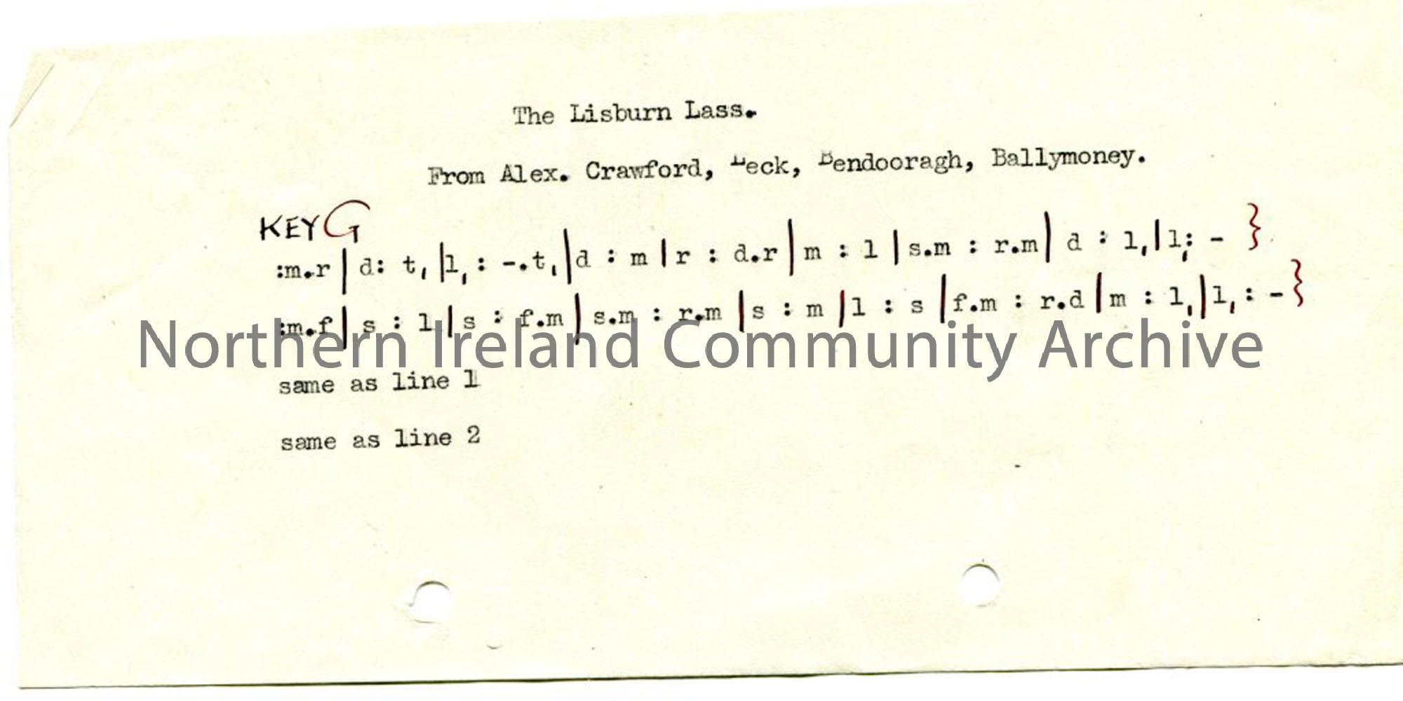 Typed tonic sol-fa notation to ‘The Lisburn Lass’