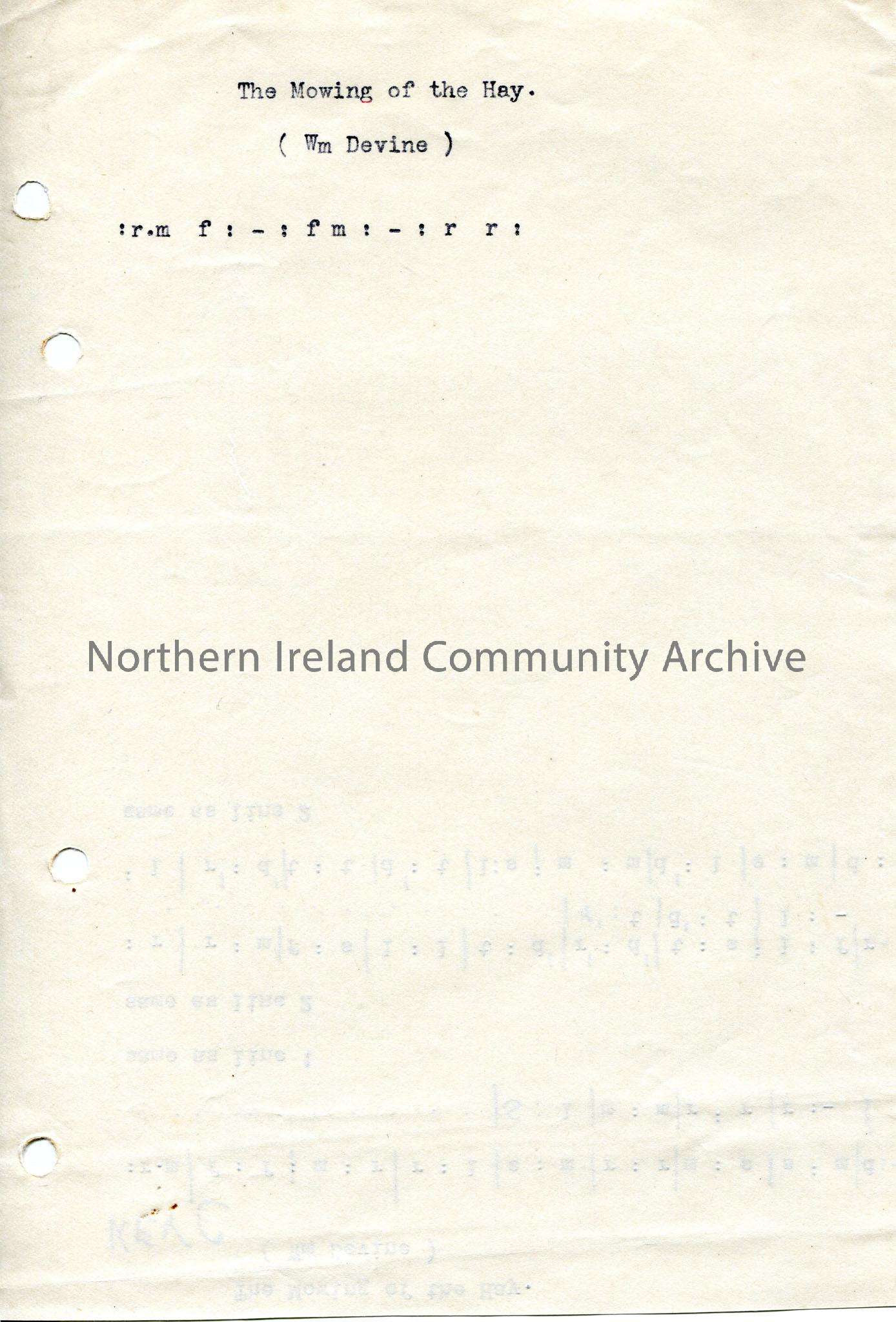 Typed tonic sol-fa notation to ‘The Mowing of the Hay’. – img692